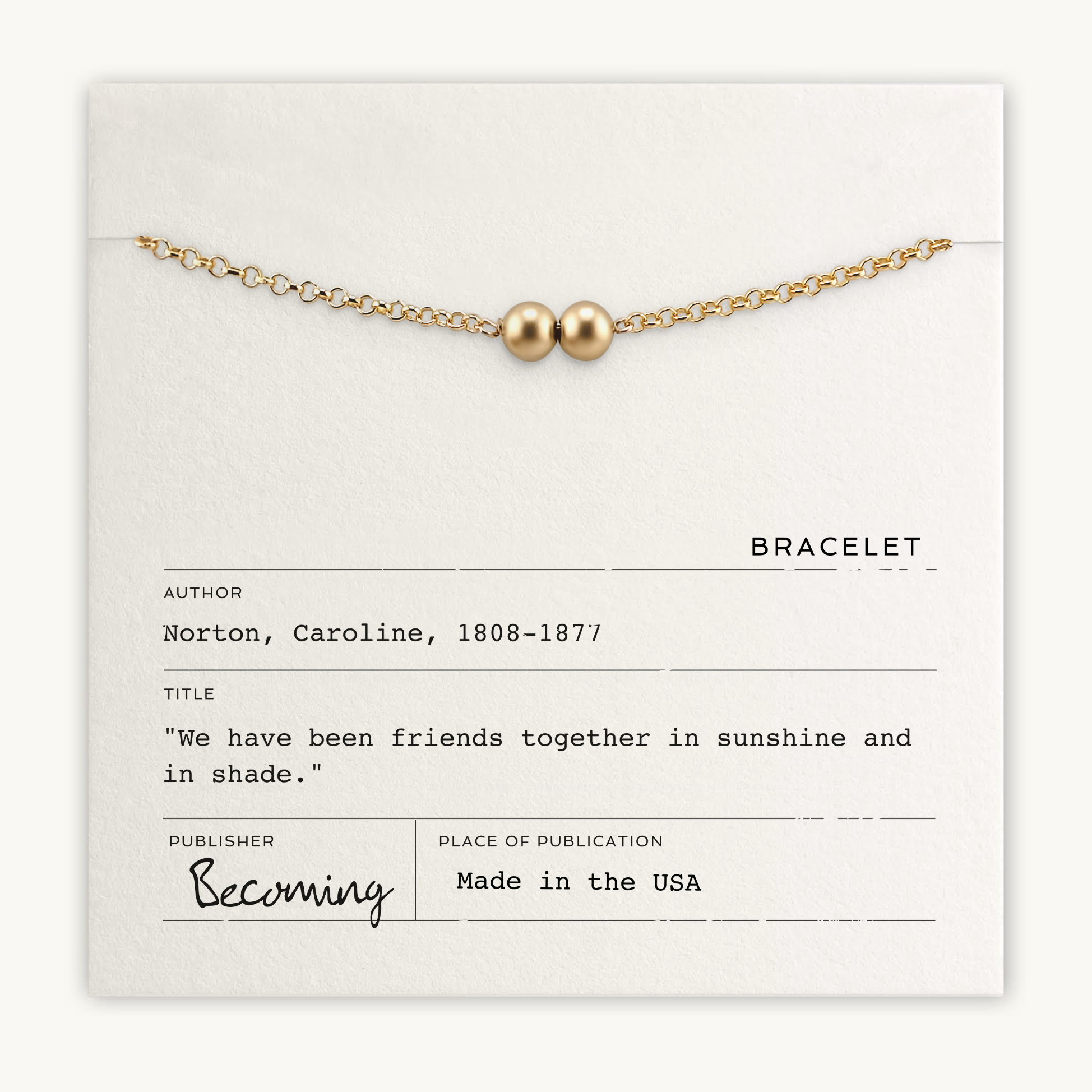 The Friends Beads Necklace, a delicate gold piece adorned with a small pendant, is elegantly presented on a card that features Caroline Norton's quote, "We have been friends together in sunshine and in shade." Offered by Becoming Jewelry, this makes a meaningful gift for your dearest friends.